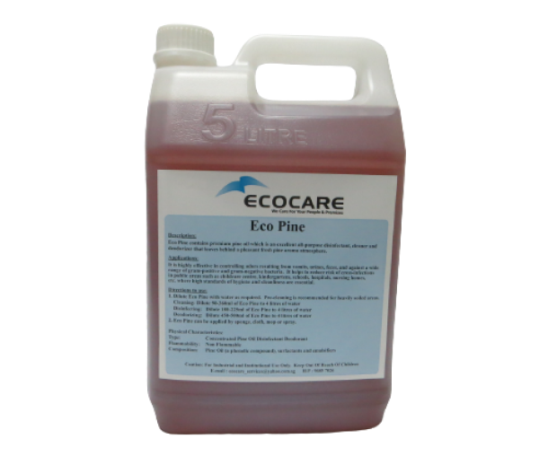 It is recommended for use in places such as toilets, restrooms, changing rooms, drains and waste receptacles, etc. Eco Pine is highly effective in controlling odors resulting from vomits, urines and feces. It helps to reduce risk of cross-infections in public areas such as childcare centre, kindergartens, schools, hospitals, nursing homes, etc. where high standards of hygiene and cleanliness are essential.